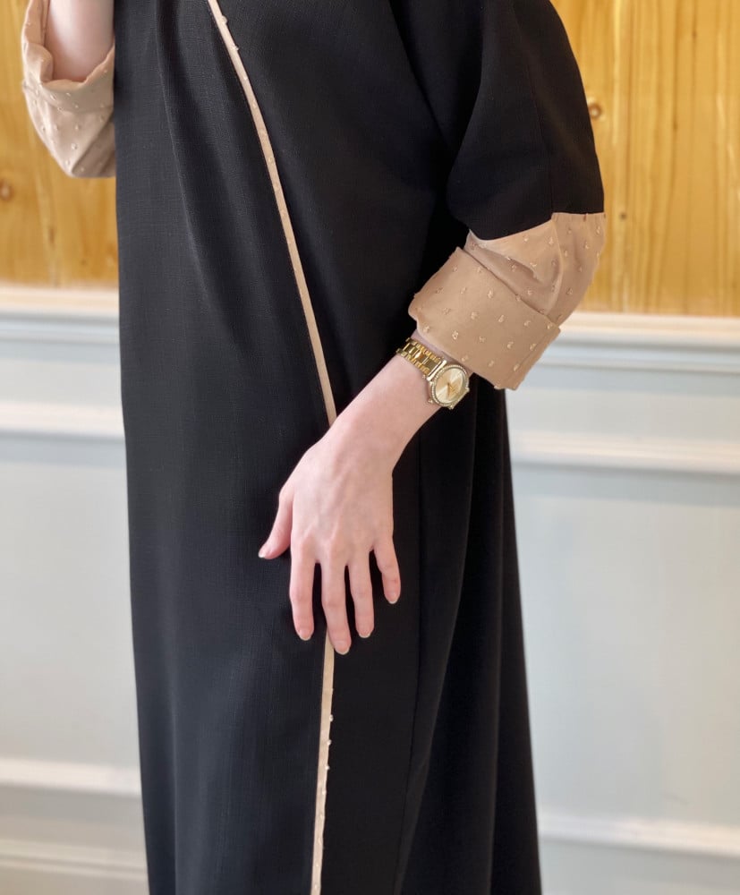 عباية بقماش أسود مشغُول#031
