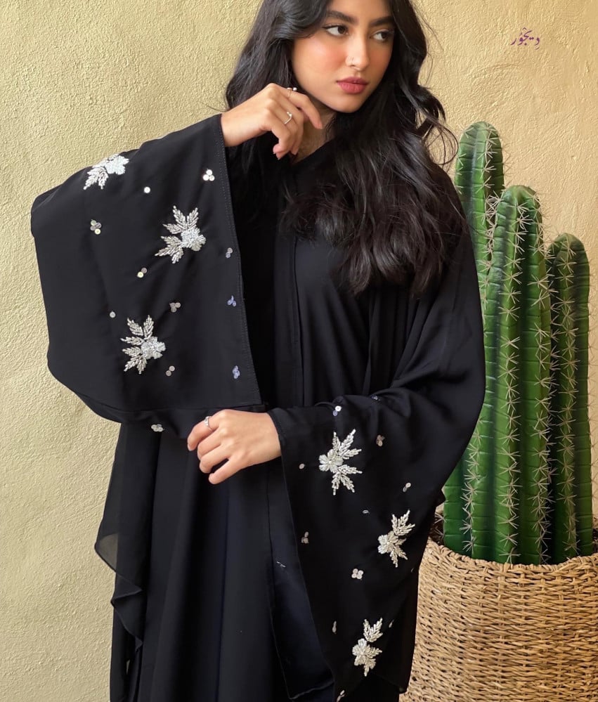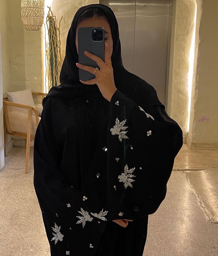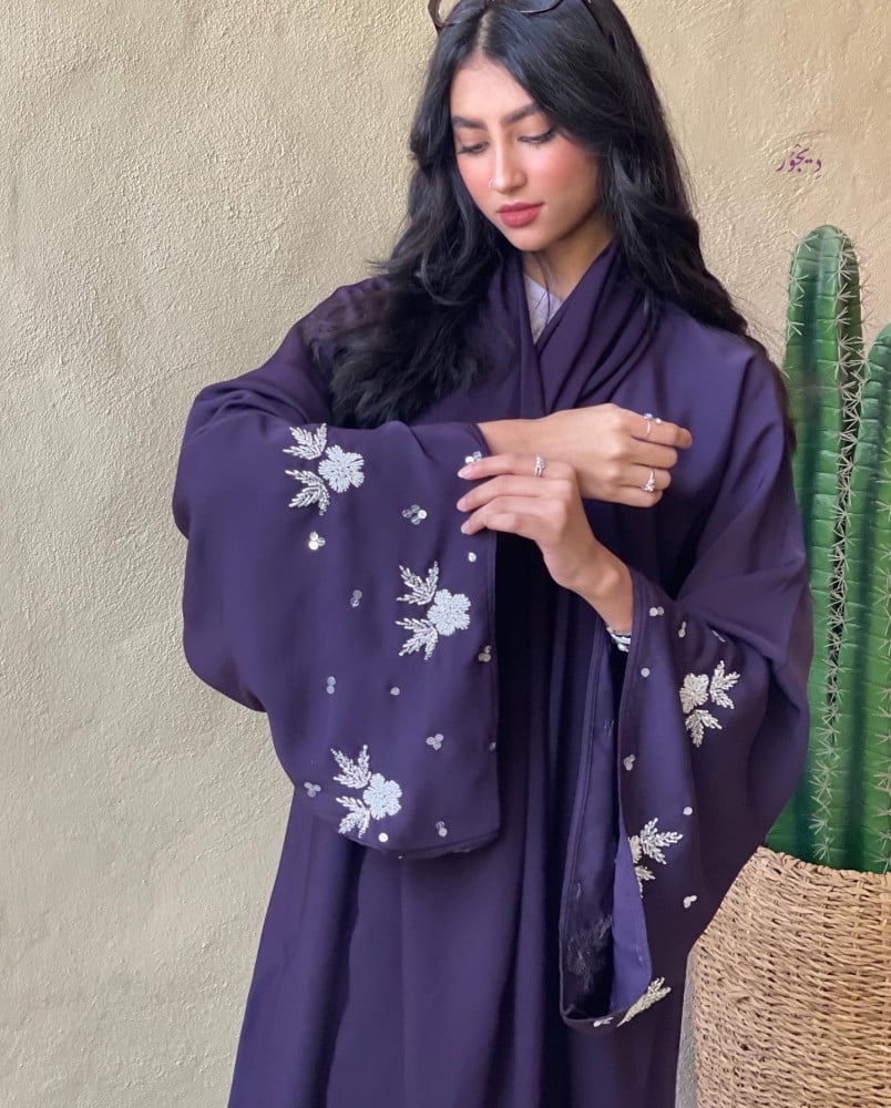 عبايه تتوفر باللونين الاسود والموف الغامق
